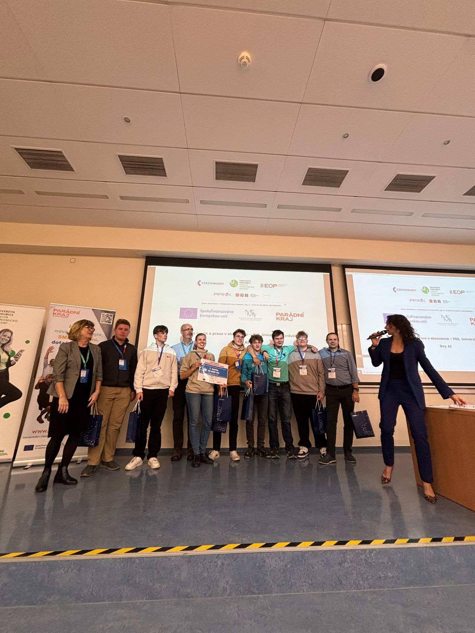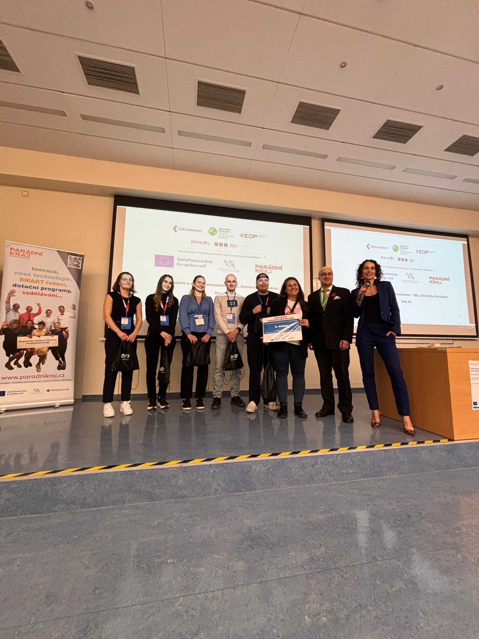 Závěr týdne tradičně patřil hackathonu Parádní nápad 2025, který přinesl inovativní řešení firemních procesů a potvrdil kreativitu a týmového ducha studentů. Vítězem letošního ročníku se stal tým, který řešil výzvu společnosti KOMFI spol. s r.o. Na druhém místě skončil tým s výzvou Krajského úřadu Pardubického kraje, třetí místo obsadil tým, který pracoval na řešení pro Domat Control System s.r.o.